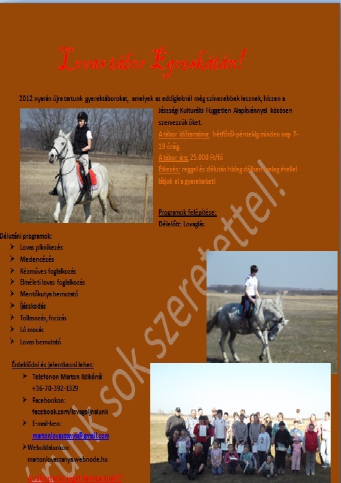 Wéber Tibor farmosi napközis lovastáborával dolgozunk, és szervezünk közös táborokat.
